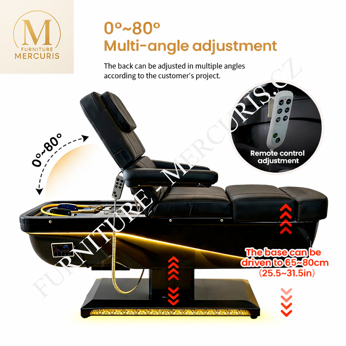Elektrický zdvih opěrky zad 0–80° (ovládání dálkovým ovladačem)